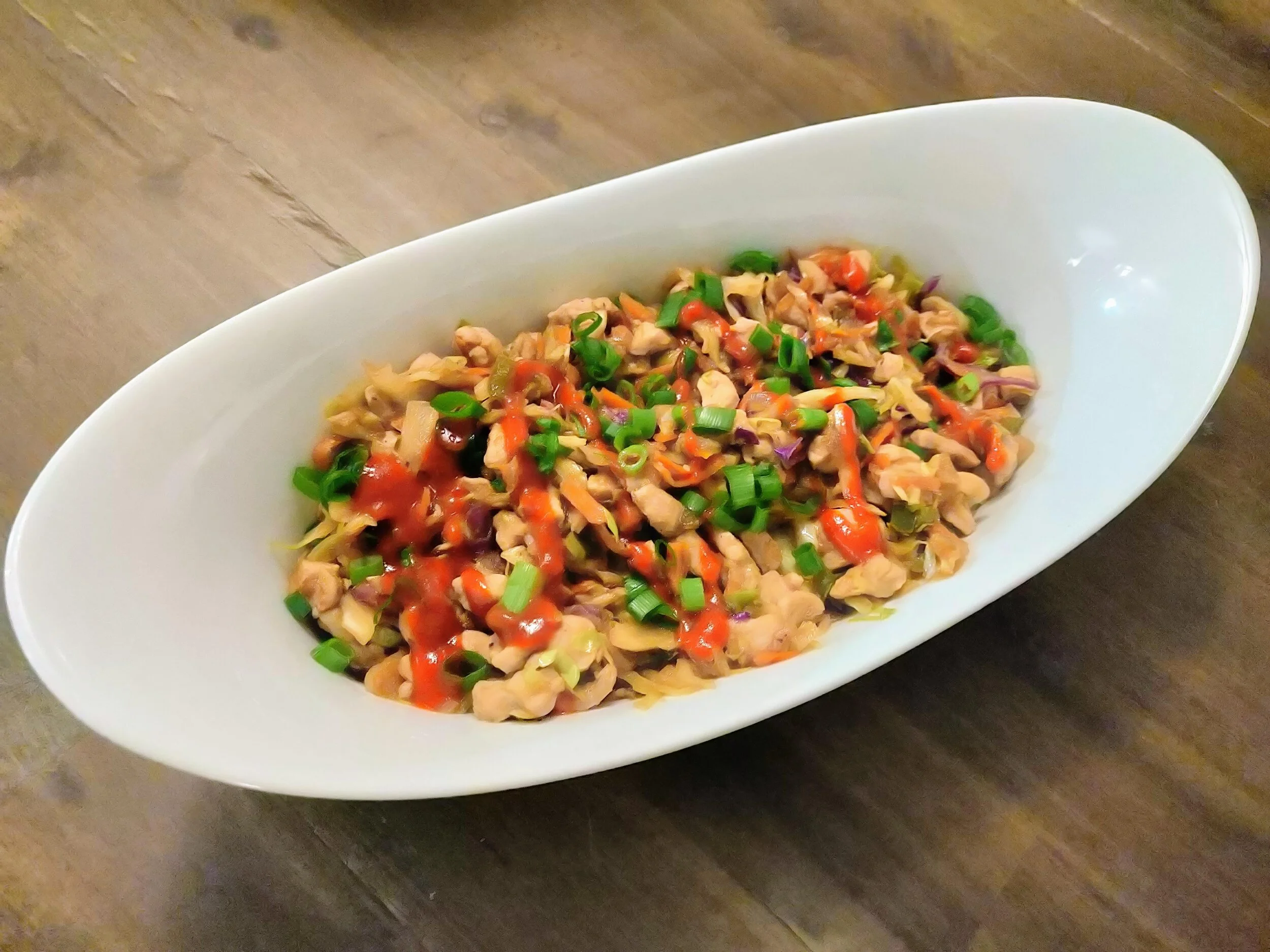 4. Add coleslaw mix, coconut aminos or soy sauce, rice wine vinegar, white pepper, and salt, to taste, and stir . Cook about 5 minutes.